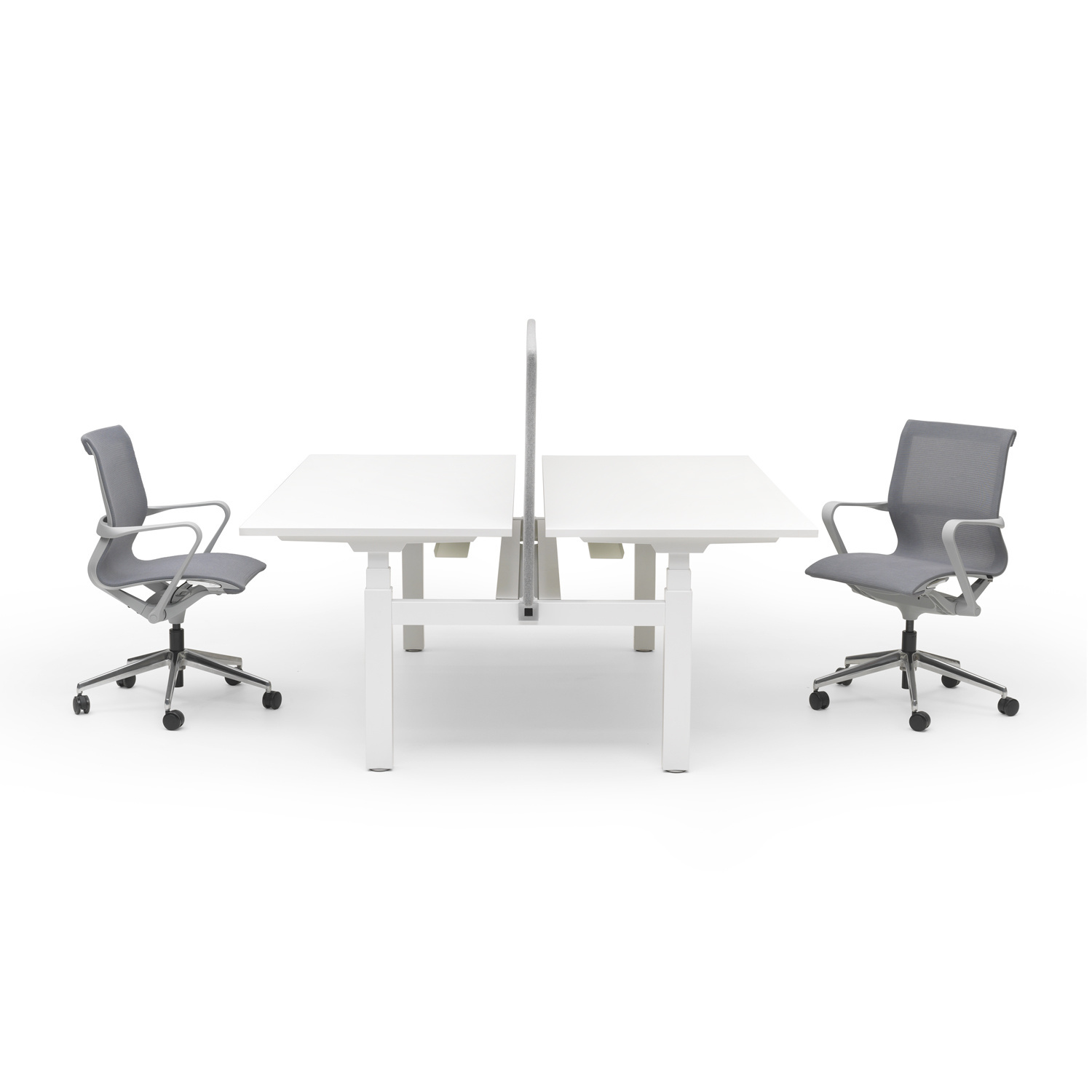 Duo zit sta bureau InMotion kan voorzien worden van een akoestische scheidingswand. Deze wordt zwevend gemonteerd op het onderstel, waarbij de bureaubladen individueel hoogte verstelbaar blijven, zonder dat de scheidingswand in hoogte veranderd. De scheidingswand is gestoffeerd met vilt en heeft een geluiddempende vulling.