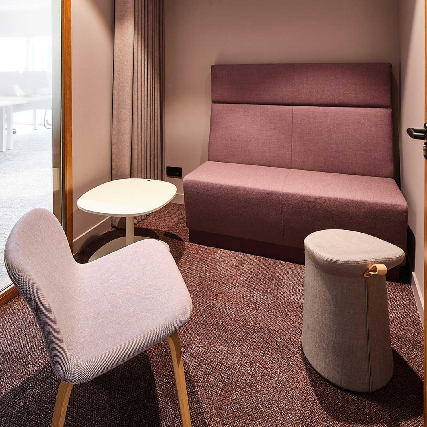 Twee naadloos in elkaar overlopende tapijttegelseries voor rust op kantoor
